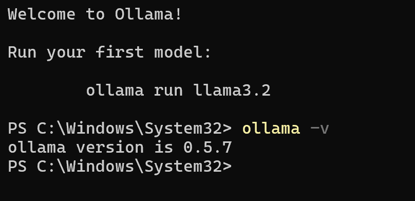 检测是否安装成功,检查安装是否成功:命令行(win+r)输入cmd,输入ollama -v命令,提示下面的信息说明安装成功。