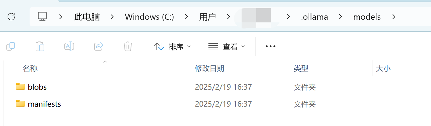 Windows系统模型模型下载到C:Users\你的电脑用户名.ollama目录下,我的在