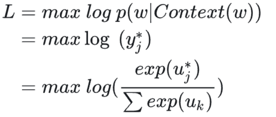 输出层通过softmax归一化,u代表的是输出层的原始结果。通过下面公式,我们的目标函数可以转化为现在这个形式