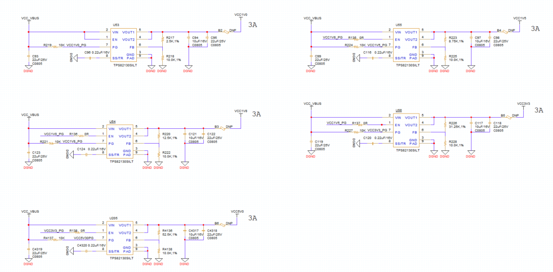 采用 TI的型号为 TPS82130SILT的 MicroSiP 电源模块 ,为板上提供 1.0V, 1.5V,1.8V,3.3V,5.0V等多路供电 ;通过 TI 的 TPS51200 生成 DDR3 需要的 VTT 和 VREF 电压。