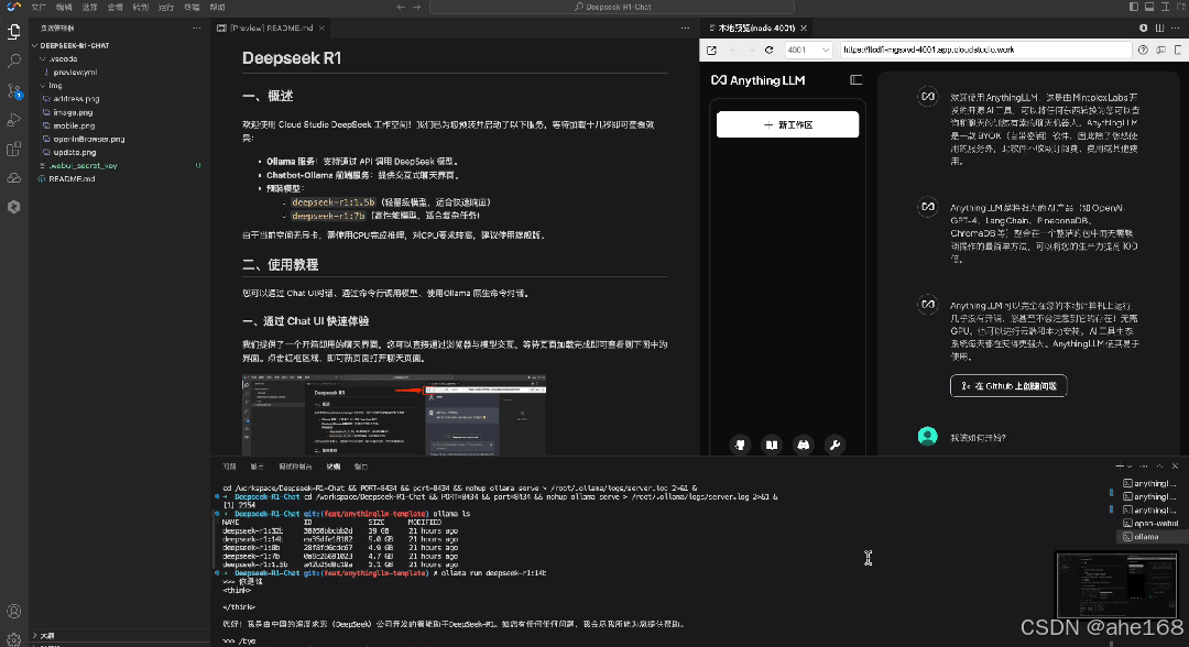 步骤1 :进入 Cloud Studio DeepSeek CPU 模板,唤起内置Open-WebUI 或 AnythingLLM 组件