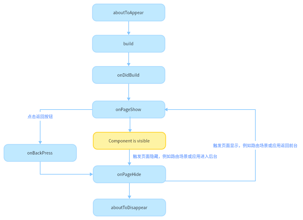 页面生命周期,即被@Entry装饰的组件生命周期,提供以下生命周期接口: