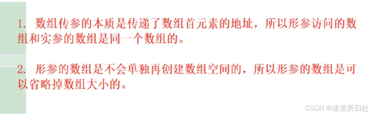 总结:⼀维数组传参,形参的部分可以写成 int * arr 的指针形式,也可以写成 arr[ ] 的数组形式