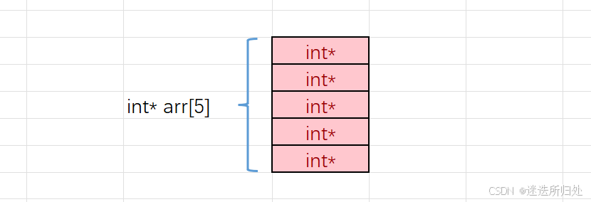 //数组名是数组⾸元素的地址,类型是int*的,就可以存放在parr数组中