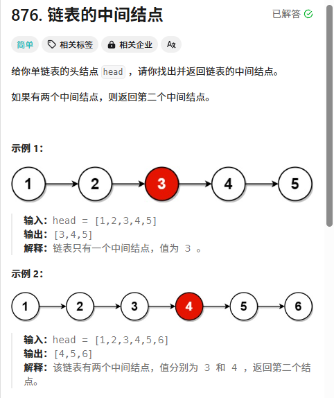 // 当 'fast' 到达链表的末尾时,'slow' 将指向链表的中间节点