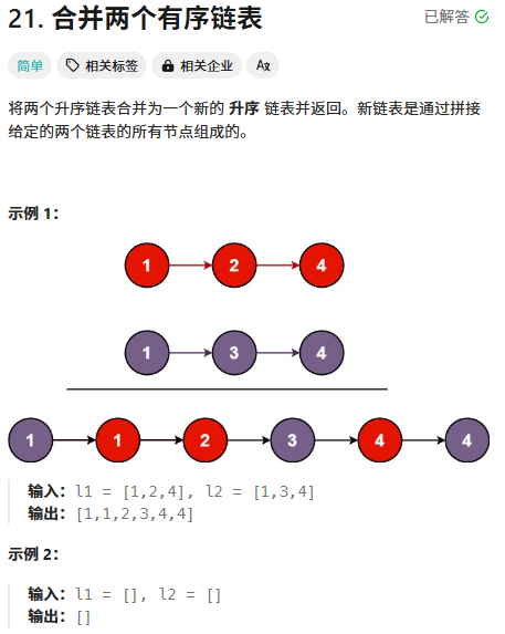 ListNode* mergeTwoLists(ListNode* l1, ListNode* l2)