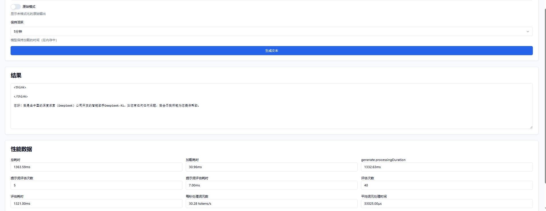 上图:文本生成功能实现token输出速度计算