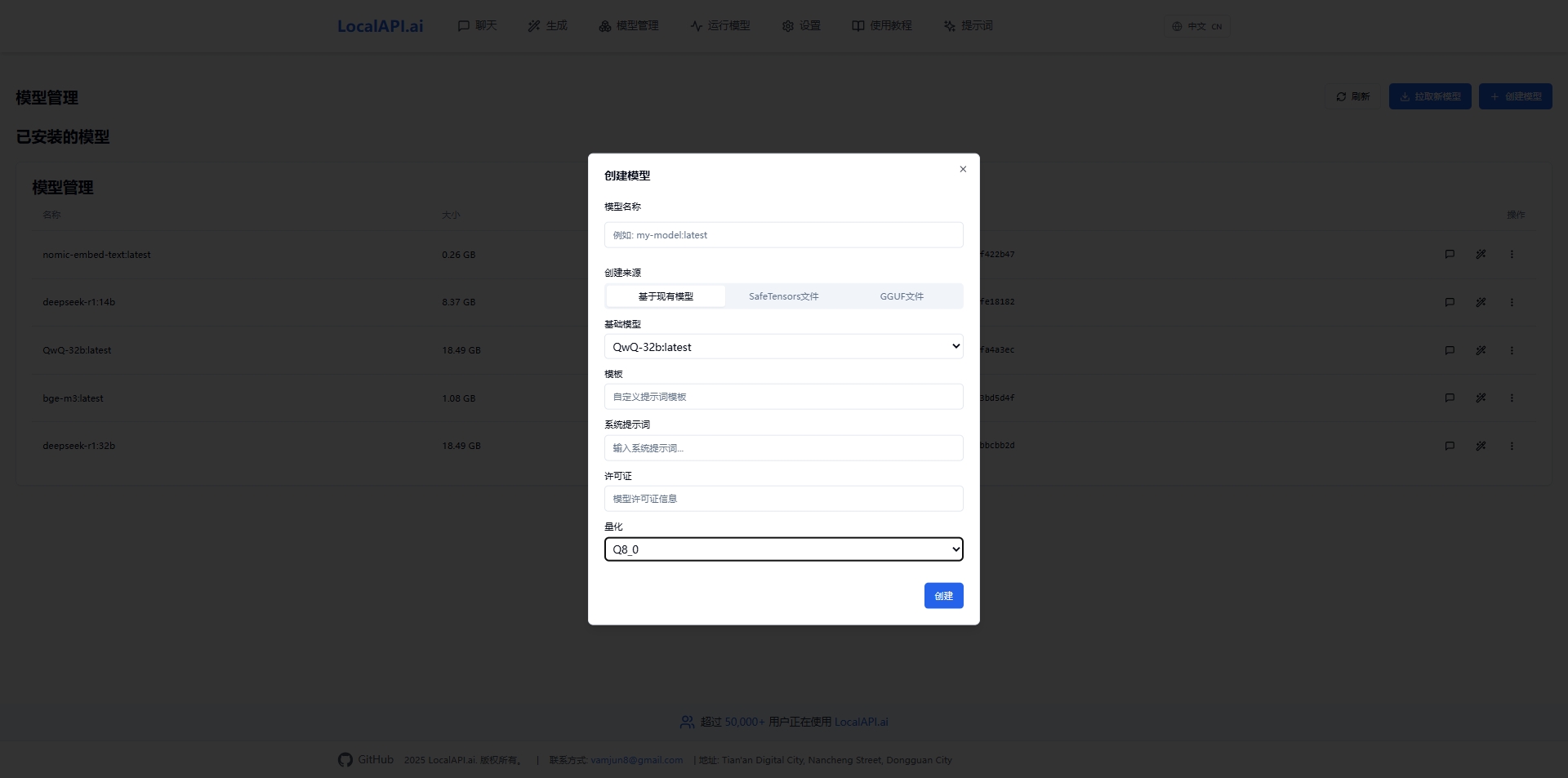 通过Ollama API,LocalAPI.ai能够将模型参数的精度从高精度(如32位浮点数)转换为较低精度(如8位整数)。这一过程会根据设定的量化策略和算法规则,对模型的权重、偏置等关键参数进行调整和转换,在保证模型基本性能的前提下,有效降低模型的存储和计算成本。