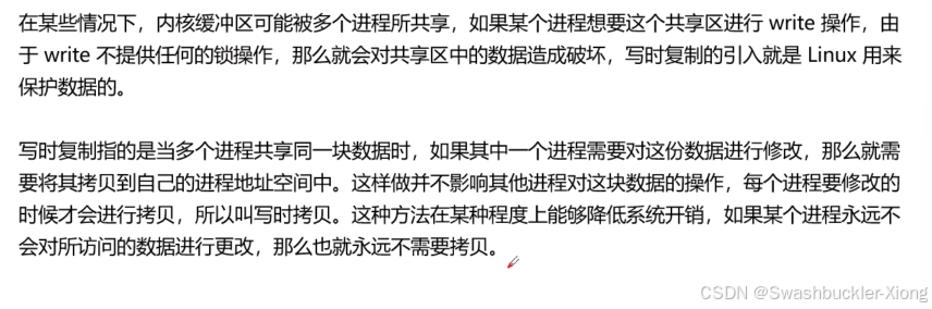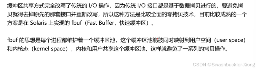 用户态直接IO 只能适用于不需要内核缓冲区处理的应用程序,这些应用程序通常在进程地址空间有自己的数据缓存机制,称为自缓存应用程序,数据库管理系统就是一个代表。其次,这种零拷贝机制会直接操作磁盘IO,由于CPU和磁盘IO之间的执行时间差距,会造成大量资源的浪费,解决方案是配合异步IO使用。