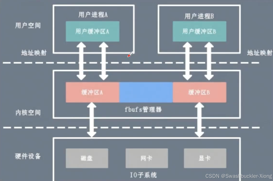 用户态直接IO 使得应用进程或运行在用户态下的库函数直接访问硬件设备,数据直接 跨过内核进行传输, 内核在数据传输过程中除了进行必要的虚拟存储配置工作外,不参与任何其他工作,这种方式能够直接绕过内核,极大提高了性能。