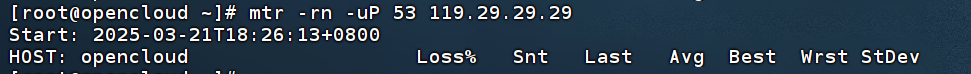 这个中间节点没有回显,但是最后一跳有回显,并且没有丢包,说明目标端是开放了tcp 53端口。