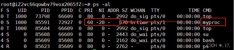 打开另一个终端,查看进程的优先级: