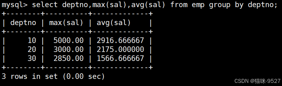 select deptno ,avg(sal) deptsal from emp group by deptno