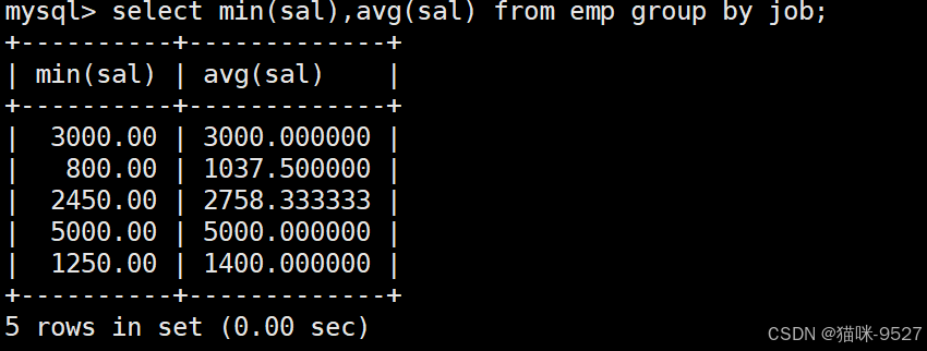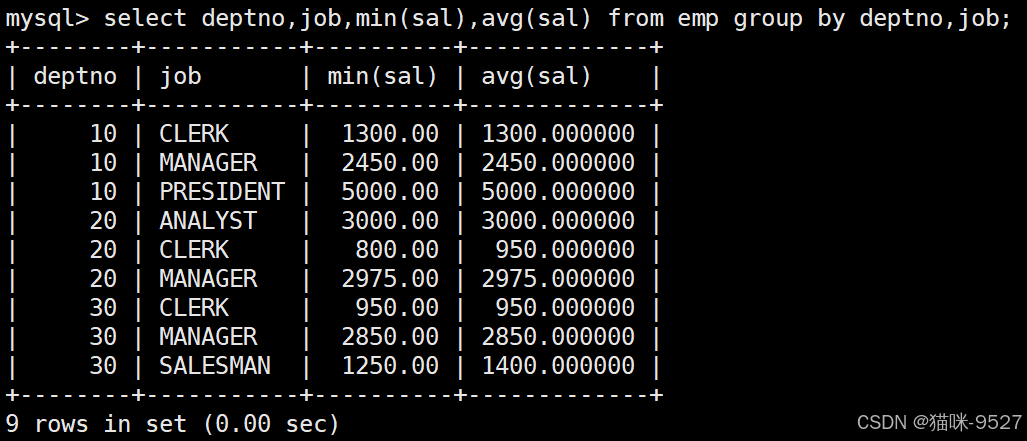 select min(sal),avg(sal) from emp group by deptno,jop;