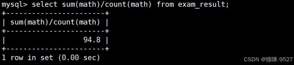 select count(math) from exam_result;统计所有数学成绩 | 统计不重复数学成绩 |