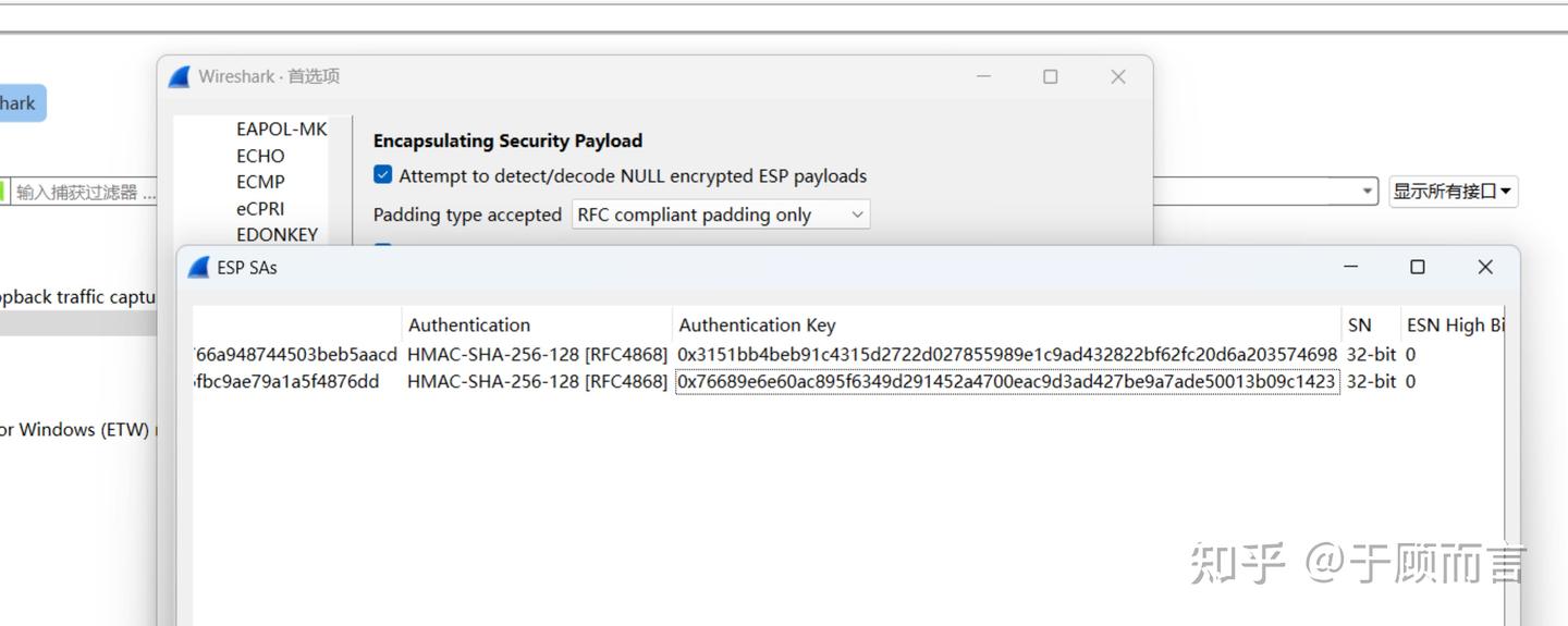 字段即可提取出ESP会话密钥(包括加密/认证密钥、SPI等),配合Wireshark的"协议首选项->ESP->导入密钥"功能,即可实现跨平台的数据包解密分析。