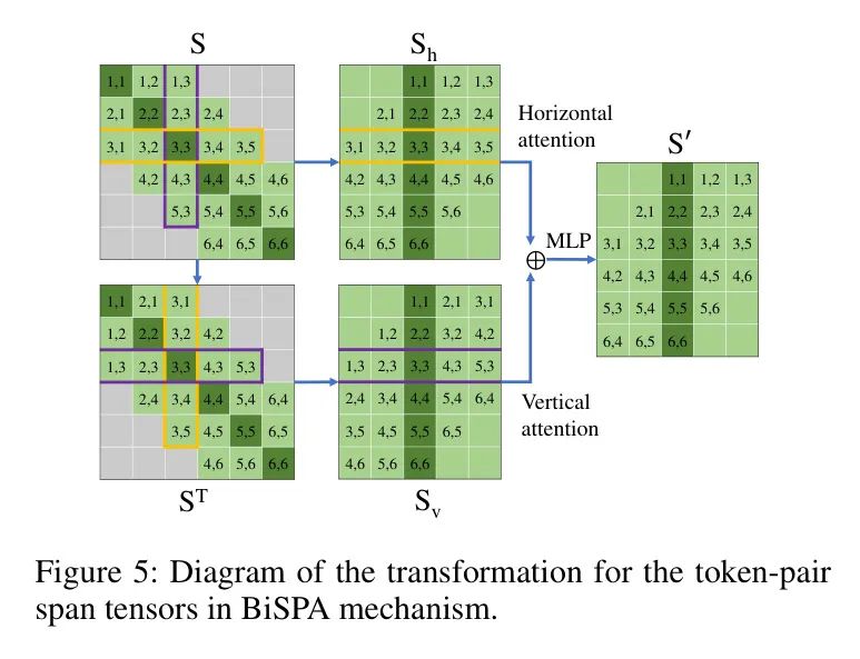 图5:BiSPA机制中 Token 对跨度张量的转换图。