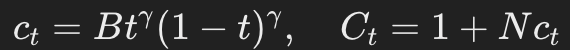 为了在t=1/2处使均匀噪声比例达到p_u,需要设定:
