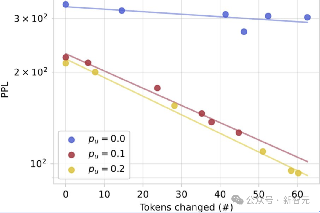 第一次实验结果有些让人失望,因为使用均匀噪声训练的模型,其困惑度比仅使用掩码的模型要差。