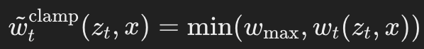 绘制w_t(z_t,x)随时间的变化曲线后(见图2),可以观察到在极低或极高噪声水平下,权重呈指数级增长。