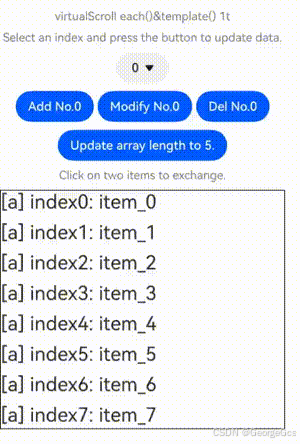}virtualScroll模式类似于LazyForEach的使用。渲染需要懒加载的长数据列表、通过组件复用优化性能表现的场景。需要创建模板代码,用于复用view。 点击跳转参考官方示例代码