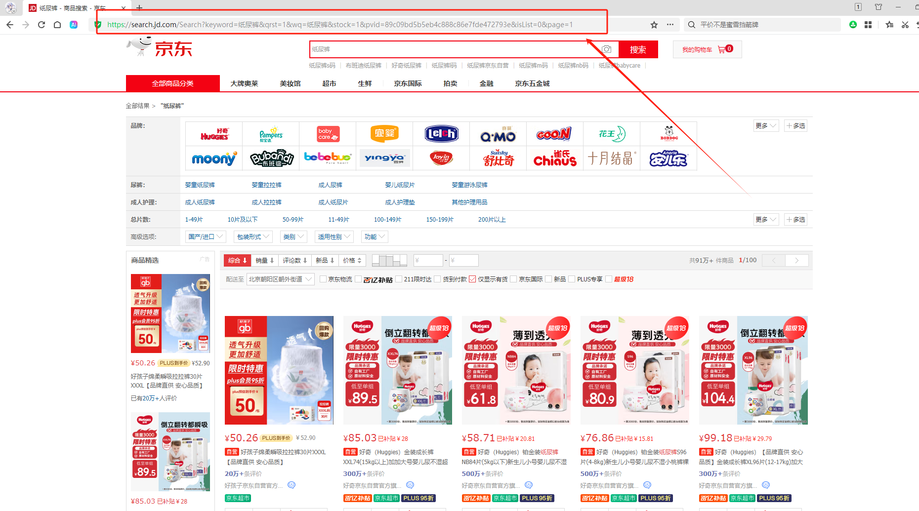 https:/search,jd.com/Search?keyword=纸尿裤&grst=1&wg=纸尿裤&stock=1&pvid=89c09bd5b5eb4c888c86e7fde472793e&isList=0&page=1