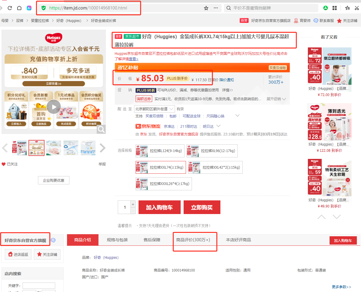 本次任务的爬取目标是京东母婴纸尿裤类目下的商品详细信息,包括: