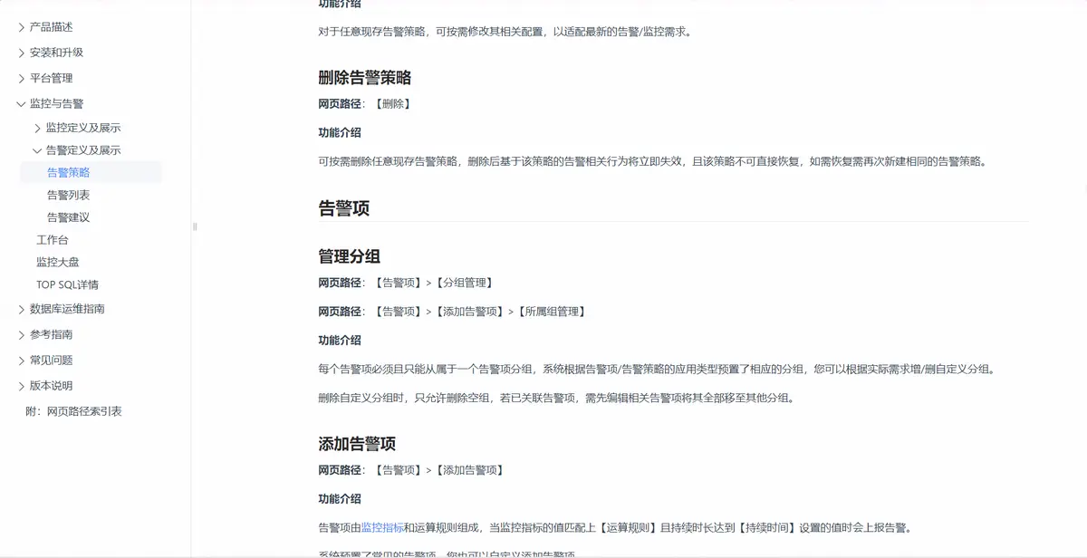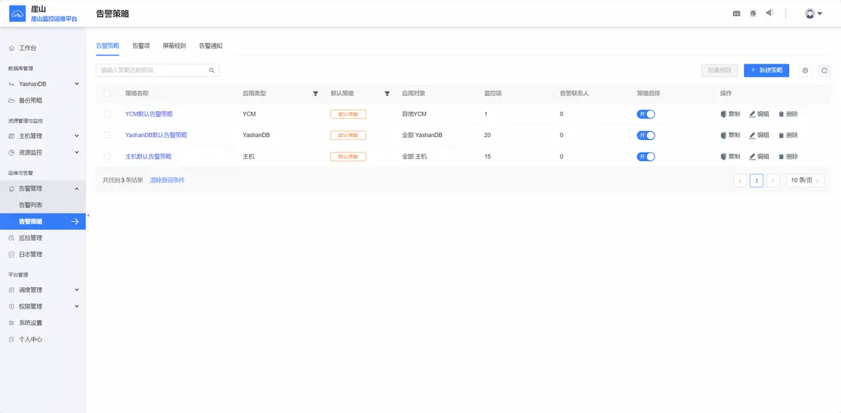 YCM上有"监控指标"和告警项配置,监控指标是不可修改、删除的。告警项是可修改配置的,官网具体说明如下。