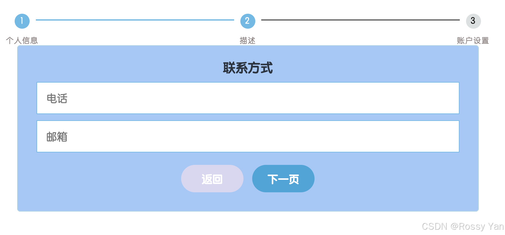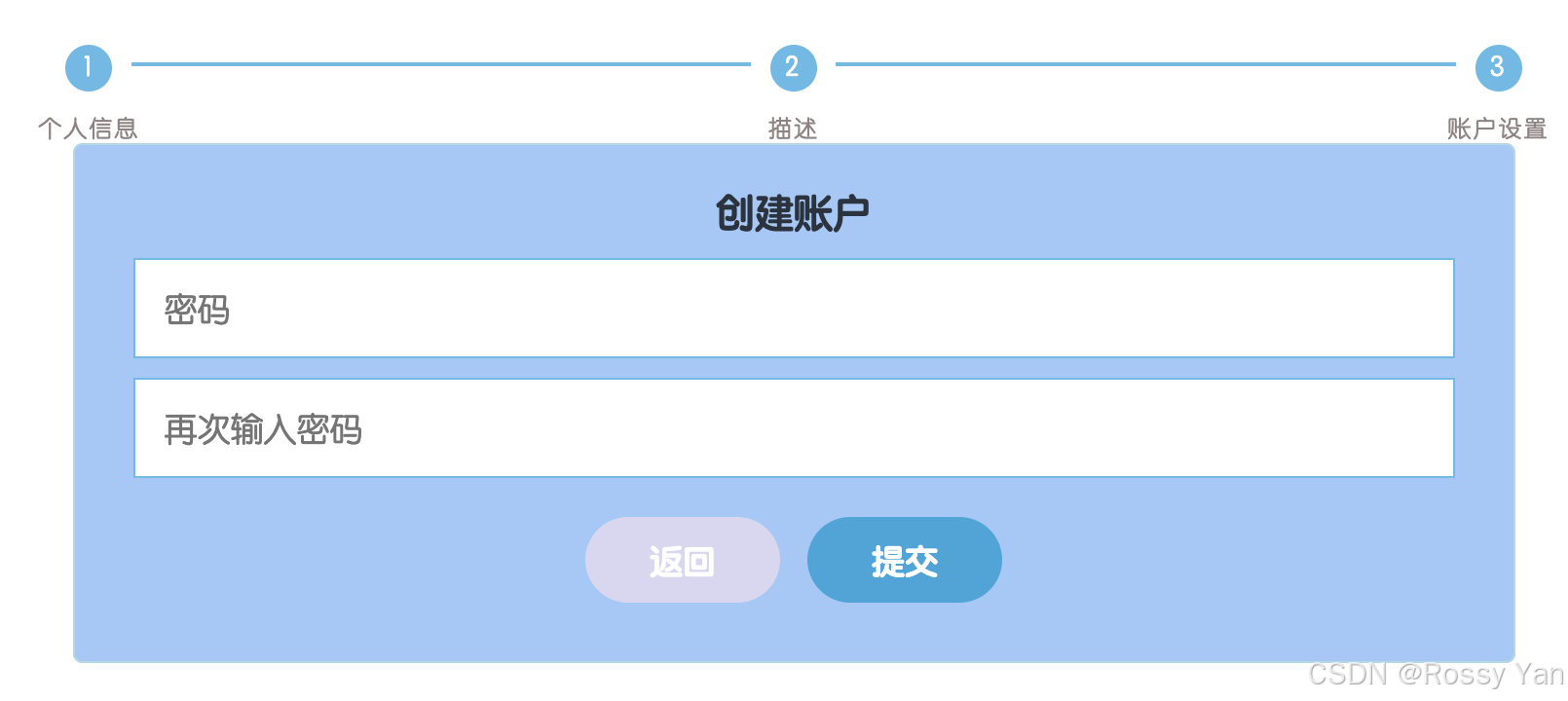 在步骤二点击返回按钮,会切换到步骤一的表单,页面显示如下: