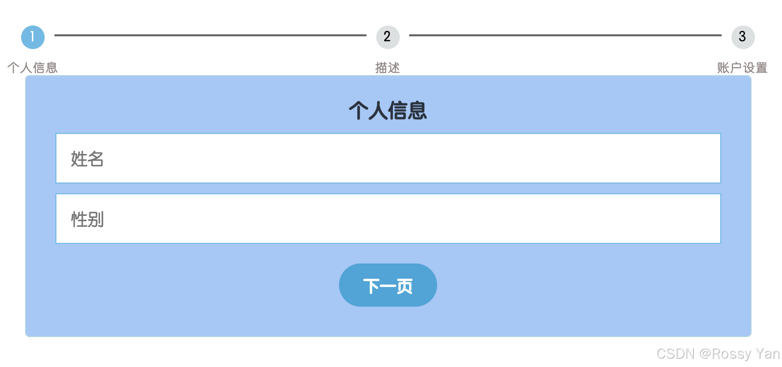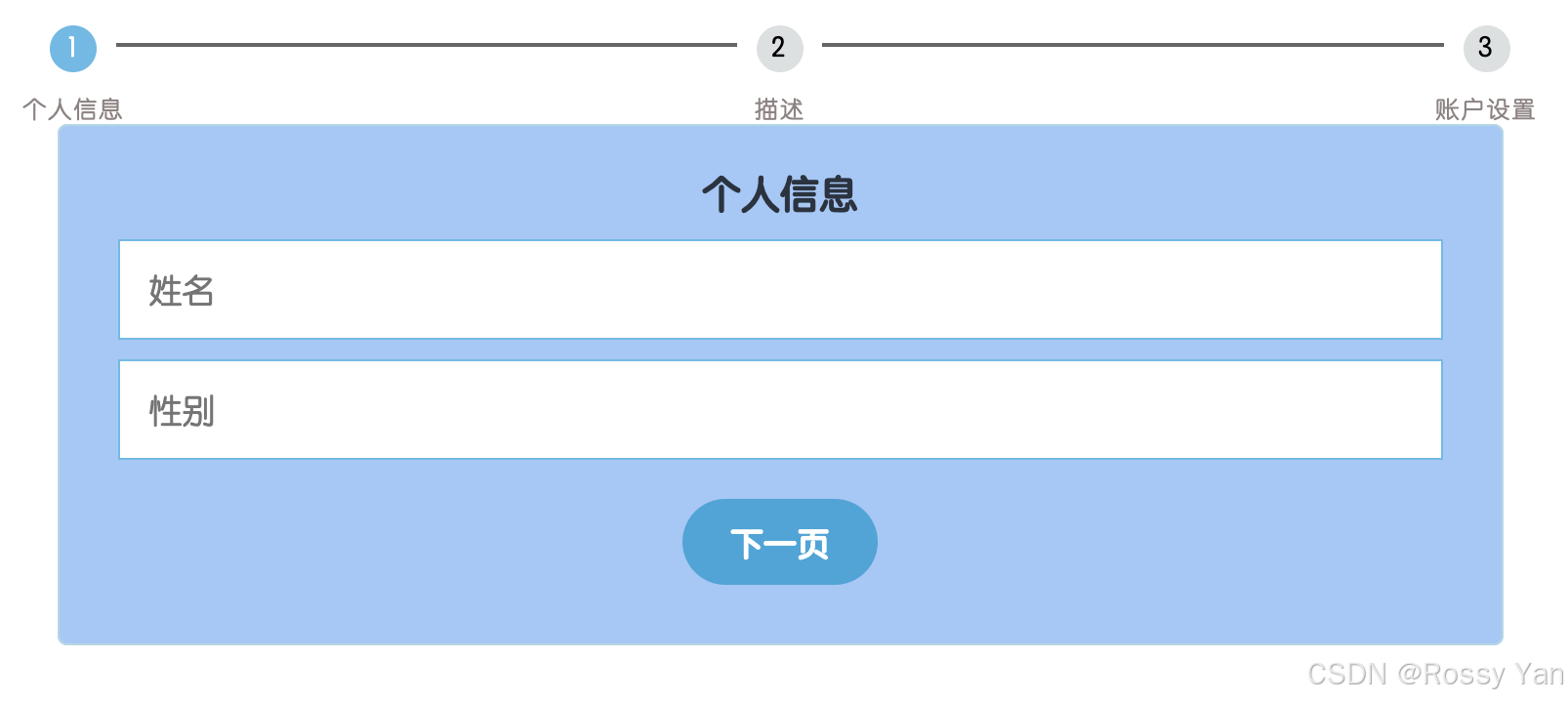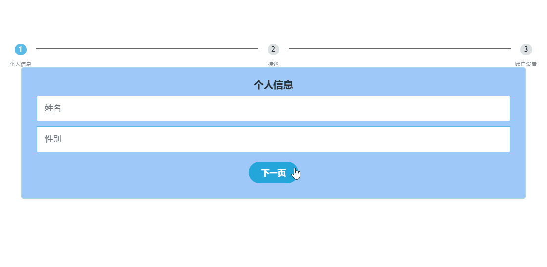 属性来控制): 在步骤一点击下一页按钮,会切换到步骤二的表单,页面显示如下: