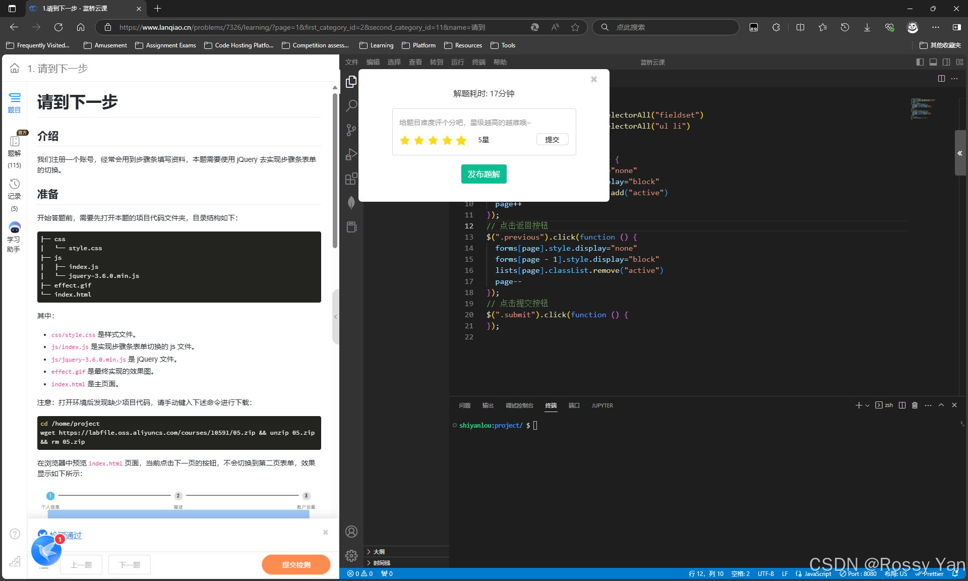我们注册一个账号,经常会用到步骤条填写资料,本题需要使用 jQuery 去实现步骤条表单的切换。
