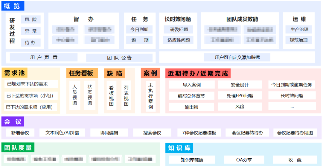 (3)研发团队内部协作的团队空间:全力打造基于智慧屏的团队空间,推出电子化站会,改变传统站会的协作模式,可更高效的聚焦团队工作,提升团队的协作效率。团队空间是每个团队成员共享、专属的工作空间,可从不同维度展示团队所有成员的任务、待办、研发进展、风险等,提供整体视图并支持下钻查看明细,便于团队负责人在宏观到微观上掌握团队的工作情况,同时每个团队成员都可清晰的了解个人和他人的工作情况,实现工作内容的透明和实时同步。 此外,在团队空间还建设了团队会议功能,实现多人协同编辑、会议纪要一键转待办、文字润色和错别字纠错、丰富多样的会议纪要模板和用户自定义会议纪要模板、协同分享和邮件发送等功能,全面实现会议管理的线上化、规范化和智能化。通过模板化的会议纪要功能,可快速记录和整理会议内容,确保信息的完整性和可追溯性。同时,系统对会议待办事项进行全流程跟踪管理,从任务分配、进度跟踪到完成闭环,实现会议决议的高效落实。这一功能不仅提升了会议的整体效率,还为团队协作提供了有力的数字化支撑。