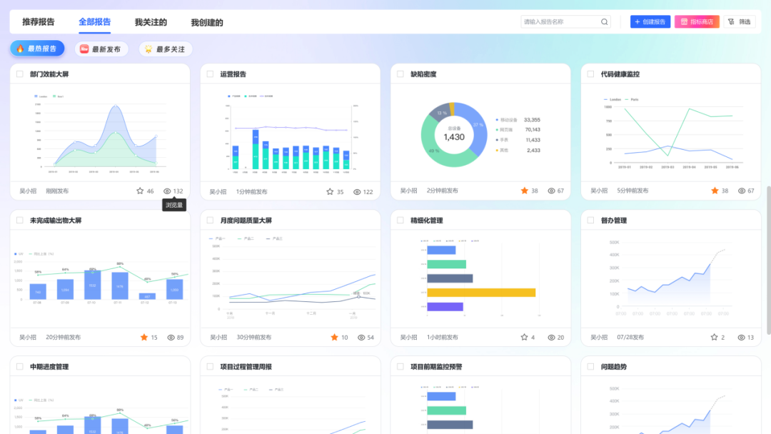 依托完备的度量指标体系,为各级管理者打造效能大屏,提供数智化解决方案,让度量成为工具,而不是负担。通过效能大屏实时展示中心、研发部、部门和小组的研发指标,支持趋势观测,实时观察研发全过程趋势,实时下钻,精准定位异常数据,风险预测,直观展示风险预警和异常推送,开箱即用,方便各级管理者自助定制效能报告。效能大屏将决策所需的信息都充分显现出来,便于各级管理者发现风险,为各级管理者提供决策支撑。