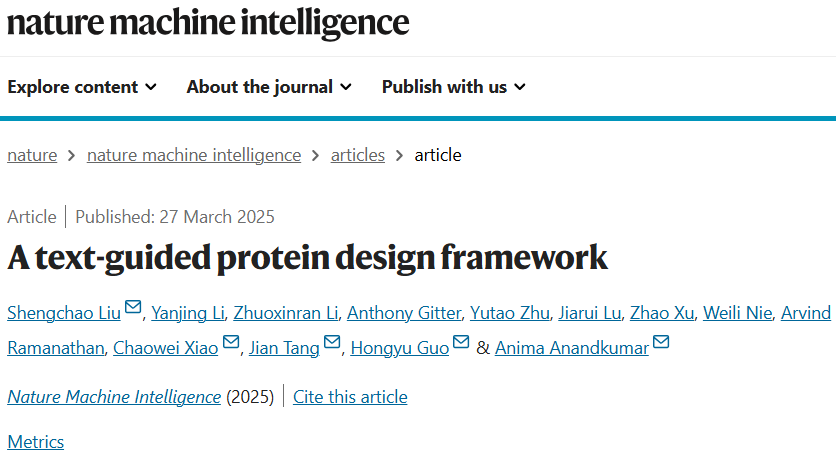 Liu, S., Li, Y., Li, Z. et al. A text-guided protein design framework. Nat Mach Intell (2025).