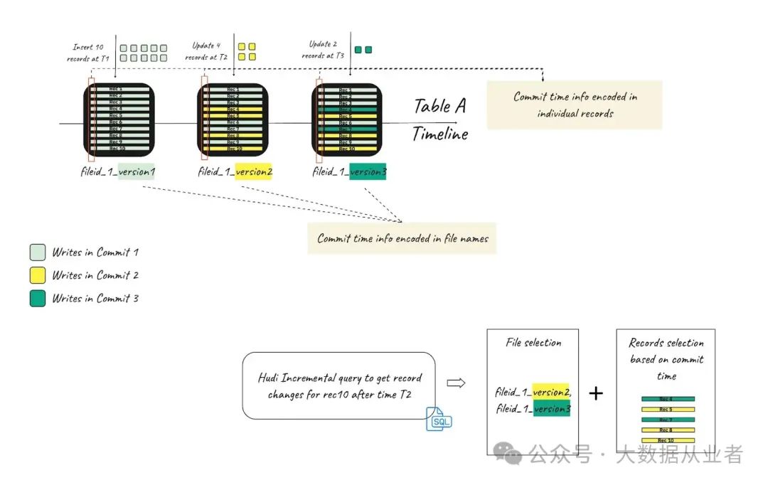 - 记录级时间旅行:追踪记录的完整历史版本,即使文件级版本元数据丢失,仍可通过提交时间还原变更。
