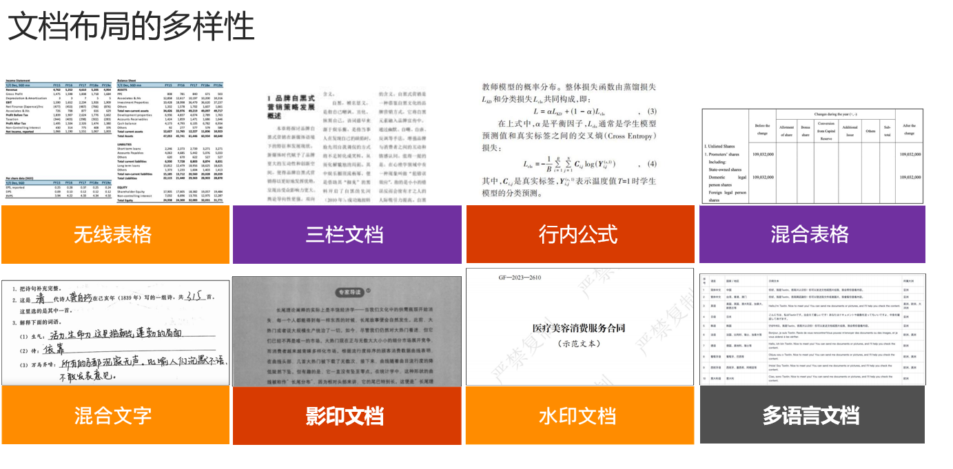 其次,文档布局的多样性也是企业知识库构建面临的主要技术挑战之一。不同文档的布局特征差异显著,这对知识库系统的解析与信息提取能力提出了更高要求。