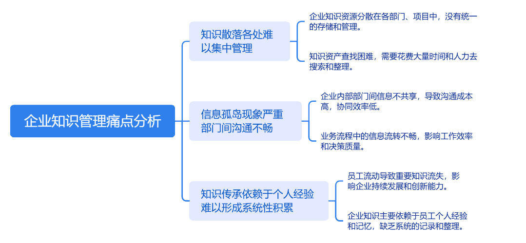然而,企业知识管理中普遍存在着知识散落各处难以集中管理、信息孤岛现象严重部门间沟通不畅、知识传承依赖于个人经验难以形成系统性积累等痛点。