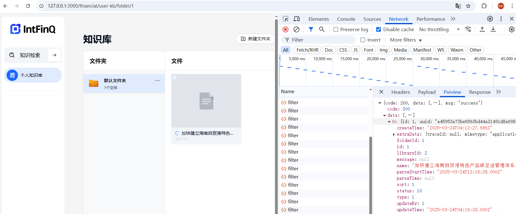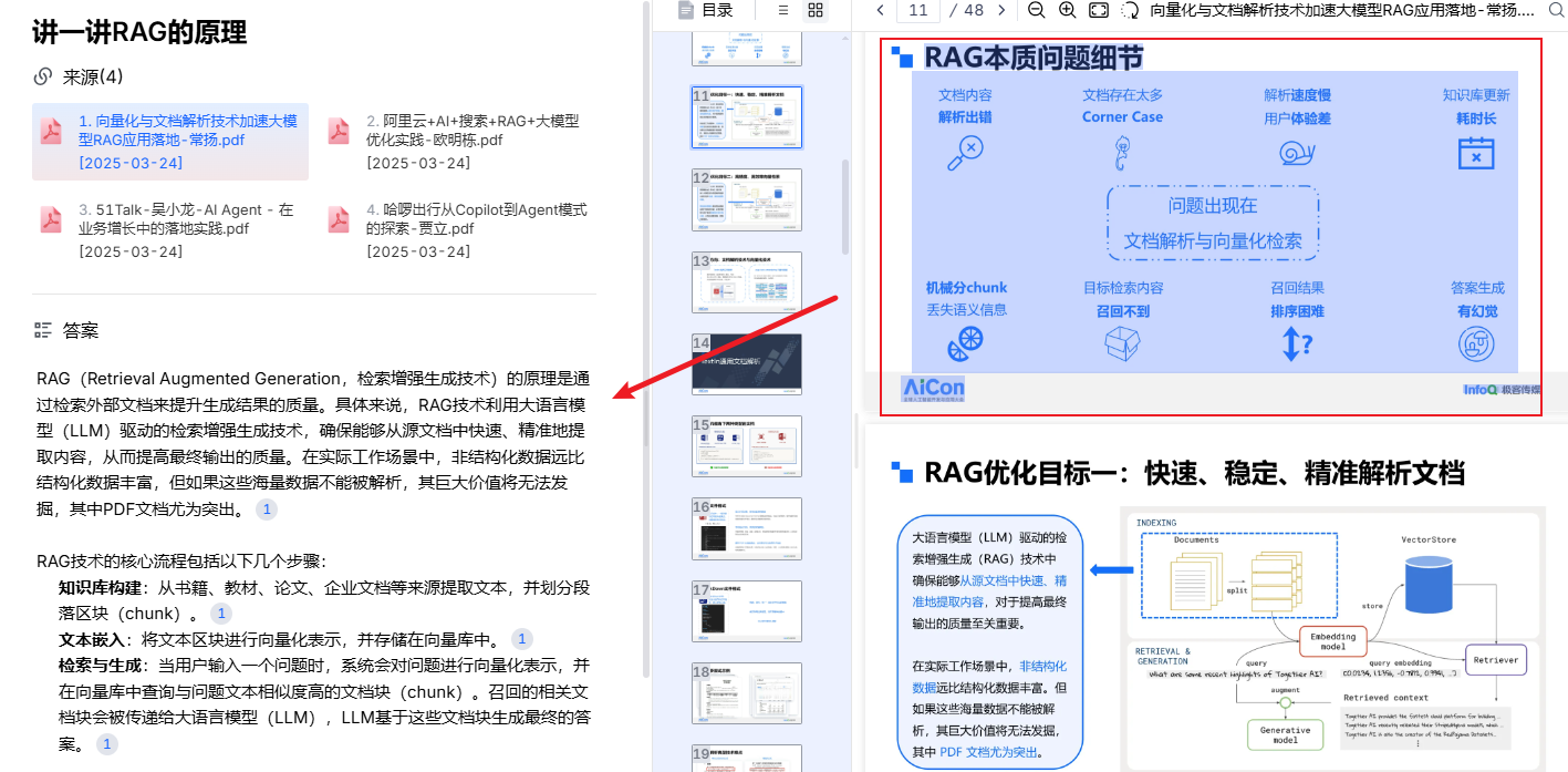 这里随便上传一个文件,可以看到能够正常调用到TextIn ParseX接口进行解析,大功告成,后面就可以和在线版一样进行知识检索了!