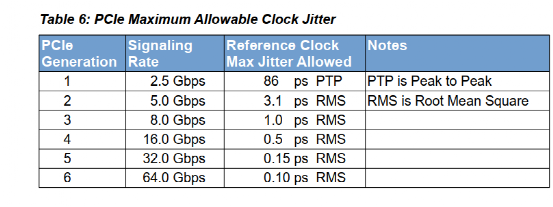 注意:上图给出的是CC时钟架构下的抖动要求;仿真PCIE4.0时候,抖动是按照0.7ps RMS来的;仿真PCIE5.0时候,抖动是按照0.25ps RMS来的;因为标准考虑了实际系统中的额外噪声,故会比较严格。