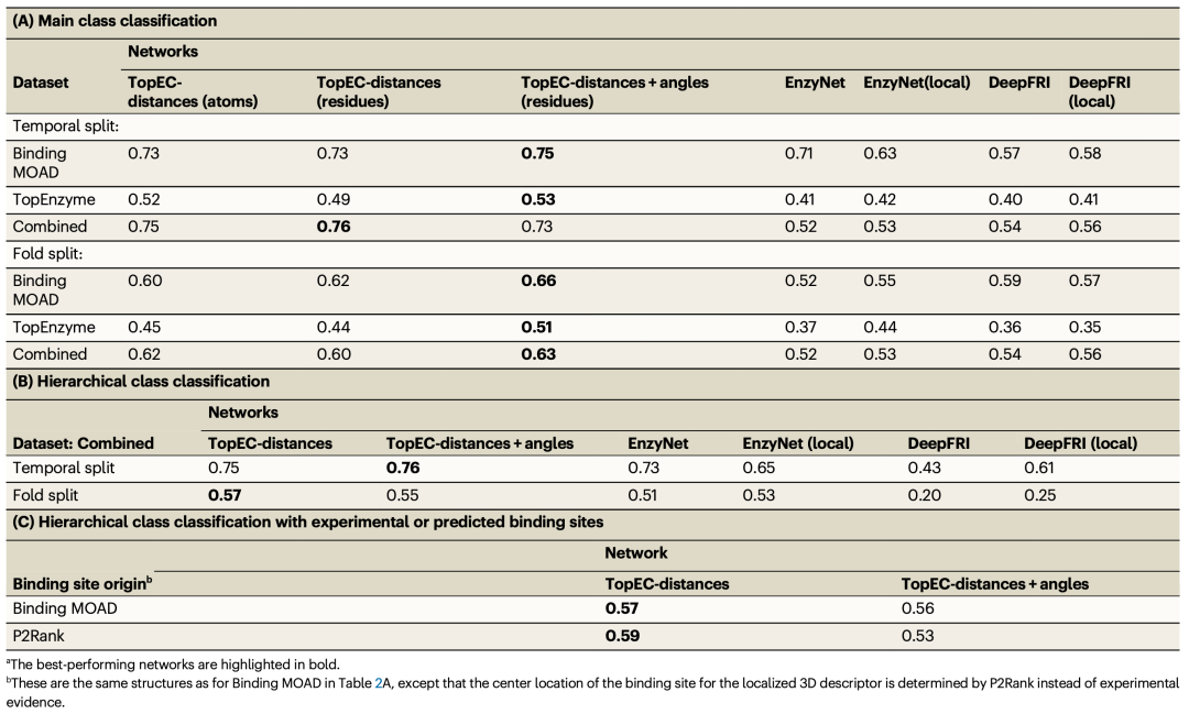 van der Weg, K., Merdivan, E., Piraud, M., & Gohlke, H. (2025). TopEC: prediction of Enzyme Commission classes by 3D graph neural networks and localized 3D protein descriptor. Nature Communications, 16(1), 2737.