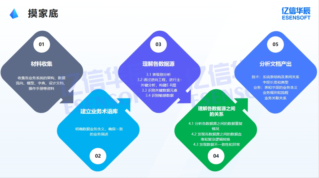 首先,摸家底是首要任务,即全面了解企业现有的系统、业务和数据现状。通过收集和分析相关数据,为后续工作奠定坚实基础。