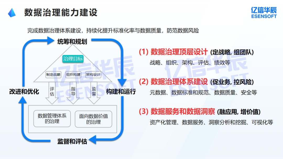 接着,数据治理能力提升是保障数据中台有效运行的重要支撑。通过数据治理顶层的设计、建立数据治理体系、制定数据标准和规范、加强数据质量控制等措施,提升数据的准确性、完整性和一致性。