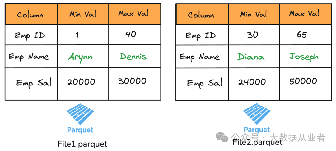 由于 David在文件1这个范围内,查询引擎只需扫描文件 1 来定位数据。文件 2则完全被跳过。