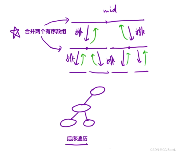 };归并排序核心思想: