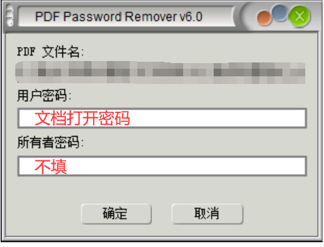 3、如果弹出需要输入密码的页面,用户密码处输入文档打开密码,所有者密码空着不填。