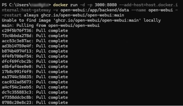 输入 “docker run -d -p 3000:8080 --add - host=host.docker.internal:host - gateway - v open - webui:/app/backend/data --name open - webui --restart always” 这条命令。如果希望通过其他方式部署,大家也可以自行查看OpenWebUl github主页的教程。
