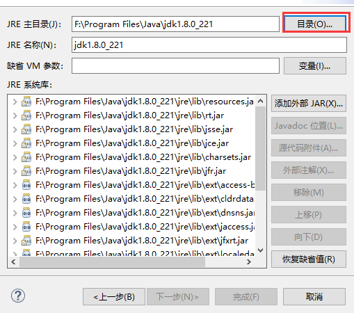 ②在“JRE主目录”选择点击目录,选择安装JDK的位置。点击完成。