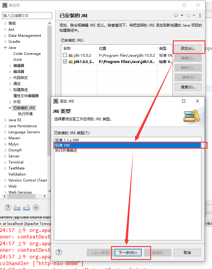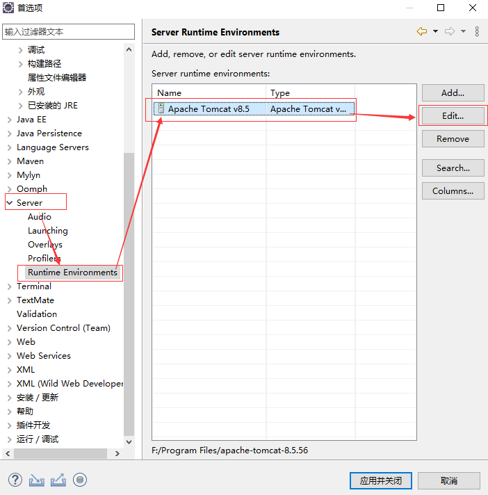 ①Server-Runtime Environments ,选择Tomcat版本,点击Edit...