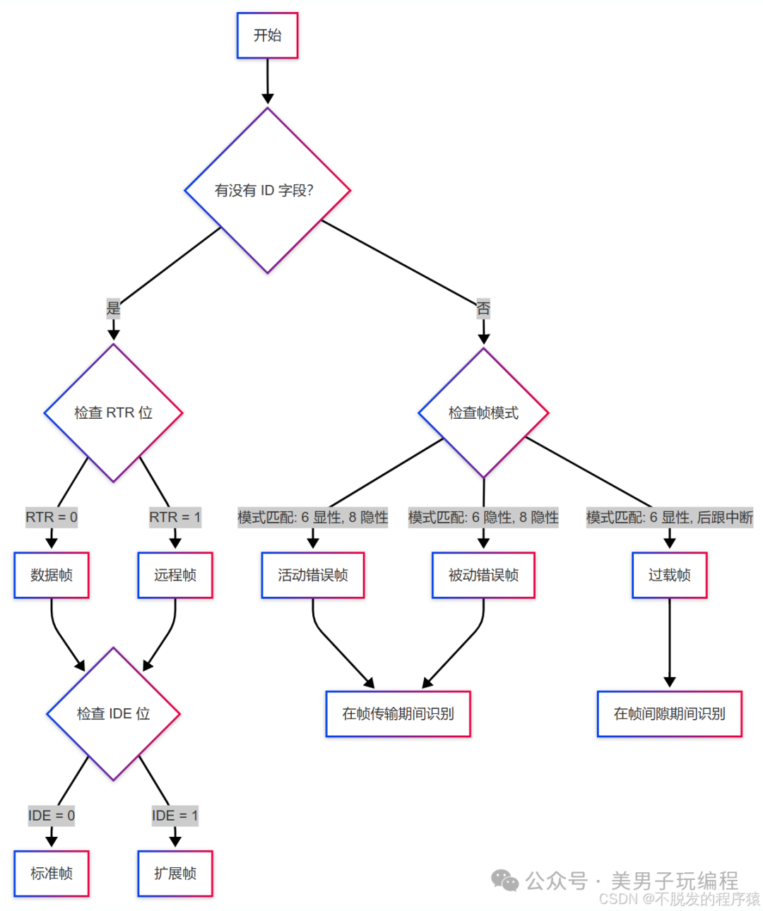 第一步:识别是数据/远程帧还是错误/过载帧