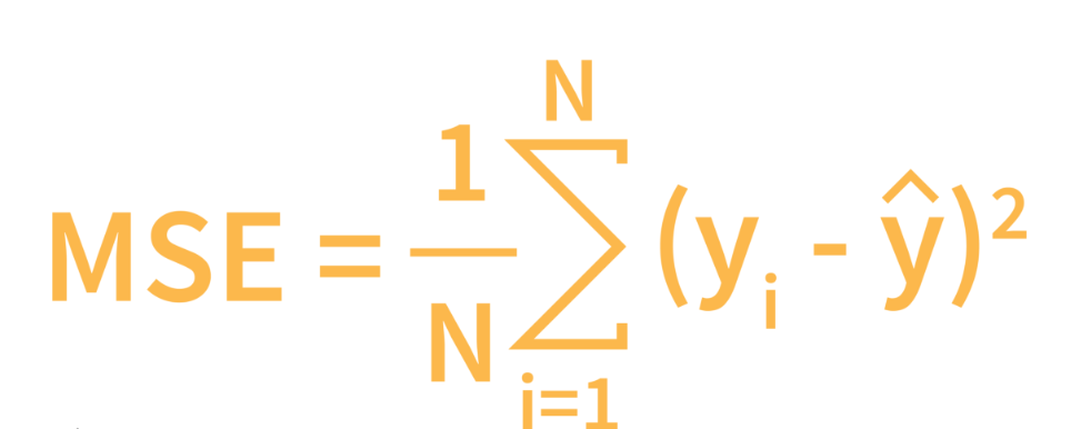 那么,如果我们取 N 个数据点的平方差并将总和除以 N,这意味着什么?是的,它表示数据点与线的平方差的平均值,即实际值和预测值之间的平方差的平均值。查找MSE的公式如下: